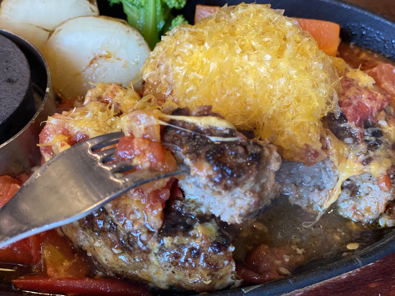 短角牛の濃厚な旨味。ジューシー感のあるしっかりハンバーグ